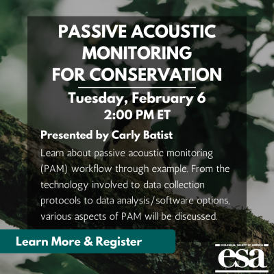 Coming Tuesday! Ecoacoustics has greatly improved our ability to monitor biodiversity efficiently across time and space. This workshop provides an overview of passive acoustic monitoring.
