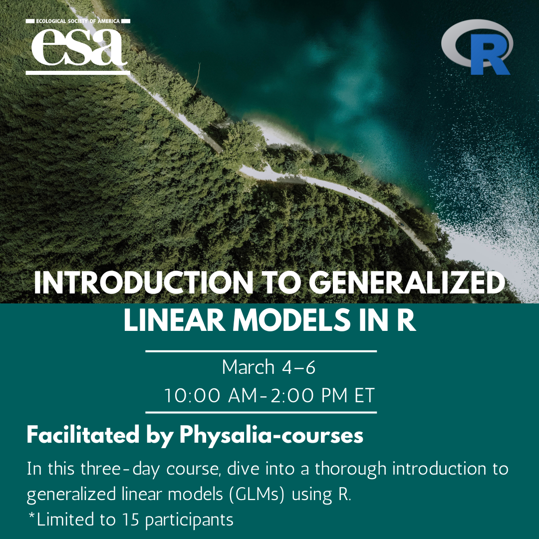 In this 3-day course from Physalia & ESA, dive into a thorough intro to GLM using R. Ideal for anyone interested in advanced statistical modeling! Just 2 spots remaining!